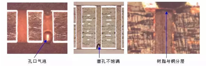 A、孔口上面沒(méi)有辦法做出焊盤(pán);孔口藏氣,芯片貼裝吹氣,也叫out-gassing