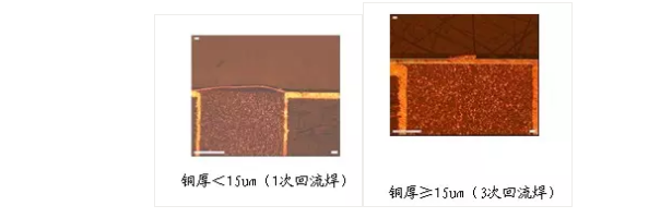 D、對(duì)于樹(shù)脂與銅分層的問(wèn)題,我們發(fā)現(xiàn)孔表面的銅厚厚度大于15um時(shí),此類(lèi)樹(shù)脂與銅分層的問(wèn)題可以得到極大的改善。(如下圖)